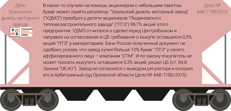 По ее словам, сейчас у владельцев небольшого количества акций отсутствуют адекватные способы защиты: они не могут потребовать у мажориатрия направления обязательного предложения по выкупу акций или оспорить последующую цену этой сделки. Законопроект, предоставлявший акционерам подобные механизмы, Госдума отклонила во втором чтении летом 2018 года. В последнее время усложняется для миноритариев и механизм доступа к документам общества, добавляет юрист. Учитывая это, юрист АБ Линия права Коршунов выделяет сразу несколько самых популярных нарушений со стороны мажоритарных акционеров: