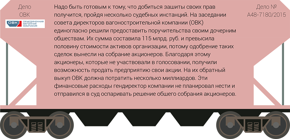 Если конфликт все же дошел до суда, то эффективными методами защиты акционеров от злоупотреблений со стороны менеджмента компании Александр Попелюк партнер Lidings называет иски об оспаривании решений исполнительных органов и совершенных сделок. В таких ситуациях заявителям придется доказать, что оспариваемые решения выносились с нарушением порядка (не было кворума, не извещали всех участников и т.п.), либо компетенции органа управления и без необходимого одобрения (совета директоров или собрания акционеров), поясняет юрист.